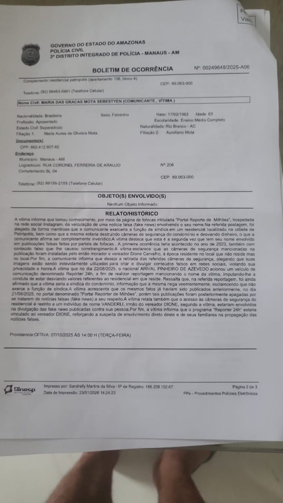De acordo com os denunciantes, que pediram para não serem identificados por medo de represálias, Dona Maria das Graças estaria perseguindo moradores específicos, fazendo acusações relacionadas à vida pessoal de terceiros e criando um ambiente de instabilidade e tensão dentro do condomínio.