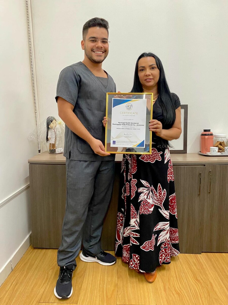 O Certificado foi recebido em Rio Preto da Eva, pelo enfermeiro André Freitas, Gerente de Saúde da Criança e Saúde da Mulher. “Nós fizemos diversas ações voltadas para as crianças e para as mulheres, principalmente as gestantes, durante todo o mês de agosto. A nossa equipe realizou muitas atividades de incentivo à amamentação e esse certificado veio para coroar todo o trabalho que foi feito”, disse ele.