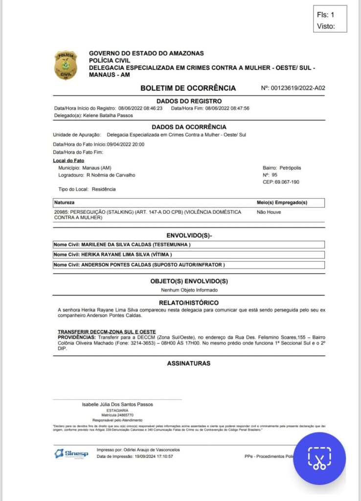 O mesmo já foi denunciado por outras mulheres, pelo mesmo crime de agressão física, agressão psicológica e perseguição